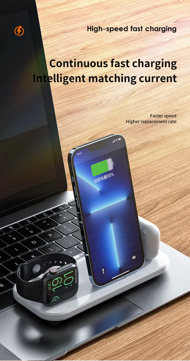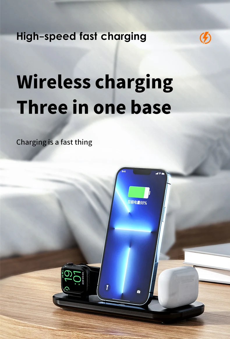 3 in 1 Wireless Charger Stand For iPhone 11 12 13Pro Max Phone Holder Qi Fast Charging Station Dock For Apple Watch AirPods